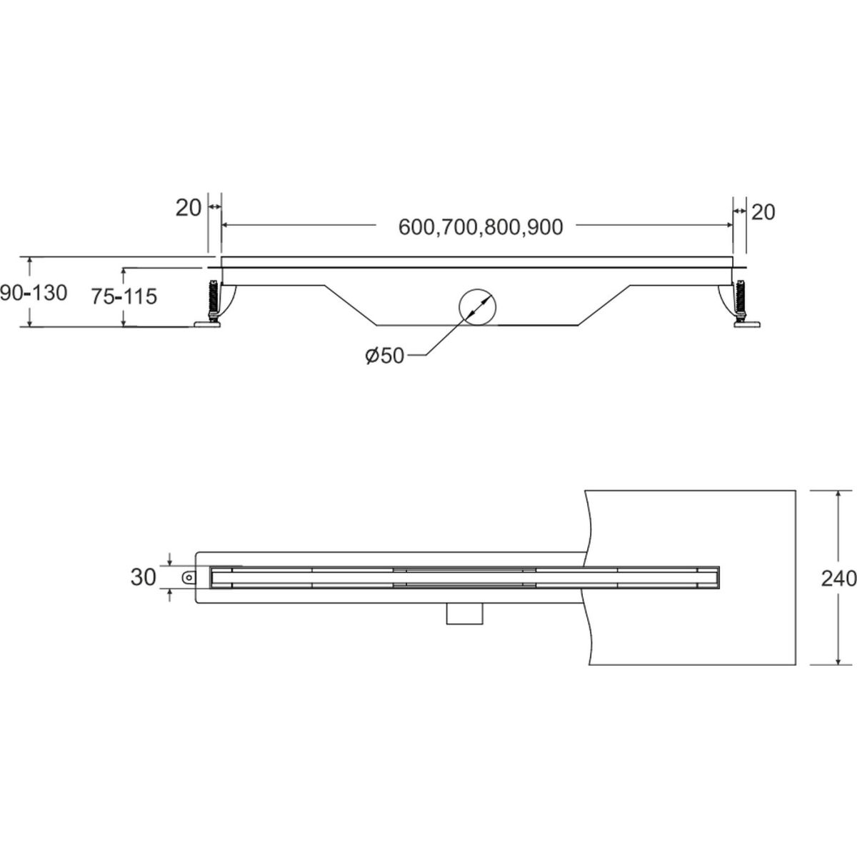 - Set enthält: Rinne mit Siphon und Befestigungsfüßen, Rost und Dichtungsmatte