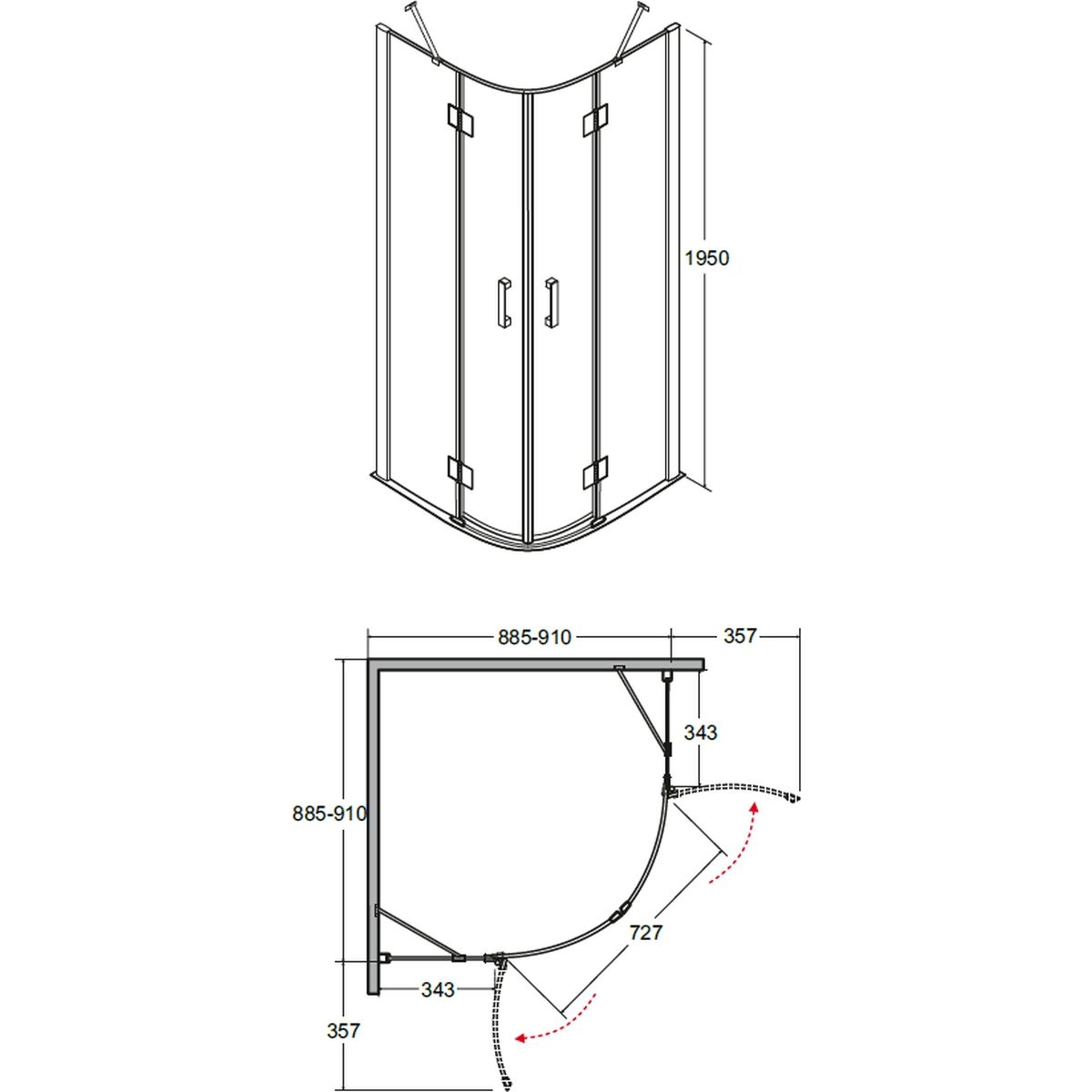 Besco Viva Dusche 90x90 cm halbrund chrom Glanz/durchsichtiges Glas VP-90-195-C
