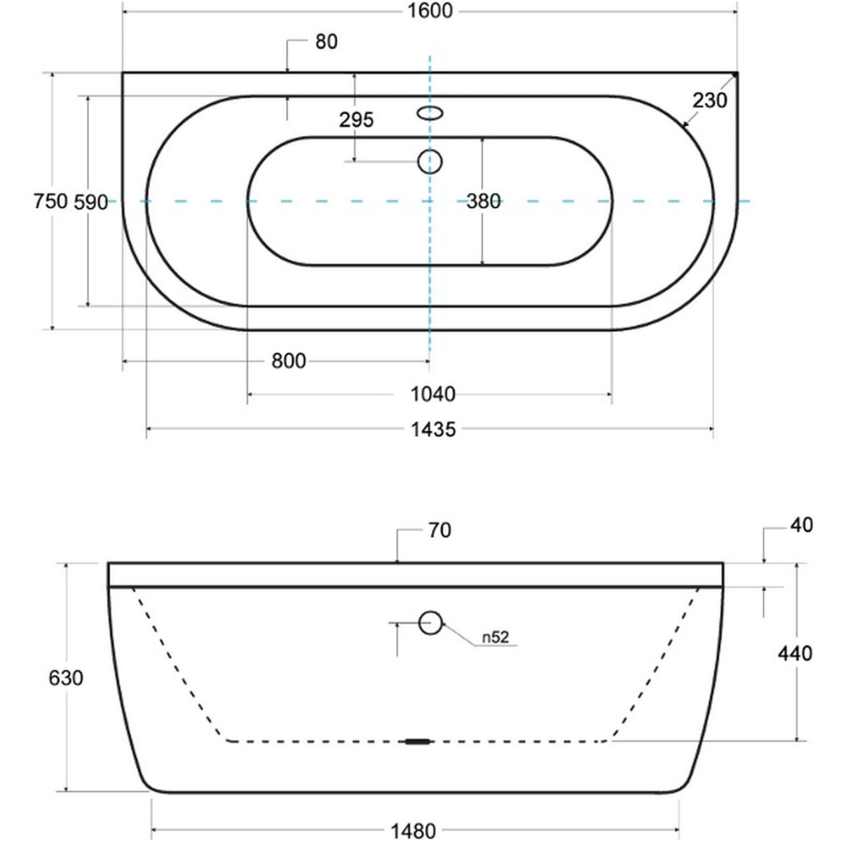 Der Preis gilt für die Badewanne ohne Überlauf. Das Foto und die technische Zeichnung zeigen die Version mit Überlauf.