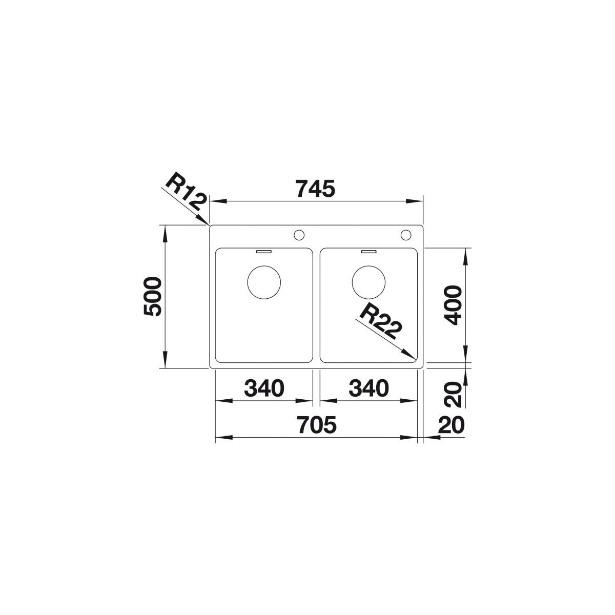 Blanco Andano 340/340-IF/A Stahlspüle 70.5x50 cm 525248