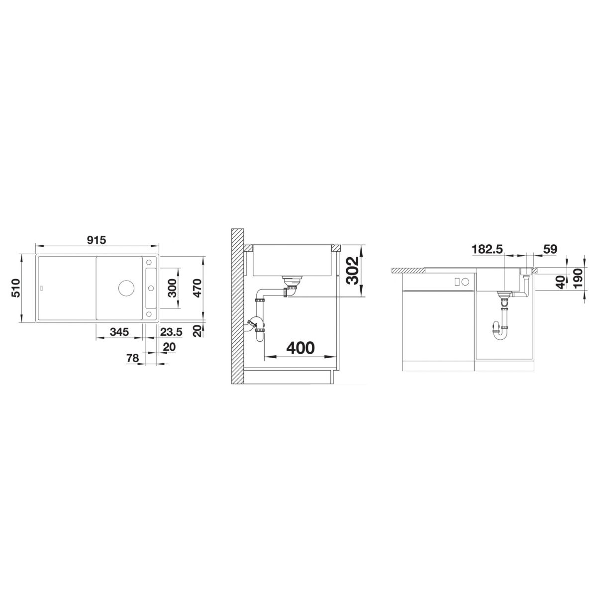 - Material: Silgranit PuraDur (glatte, einheitliche Oberfläche, die sich wie Stein anfühlt)