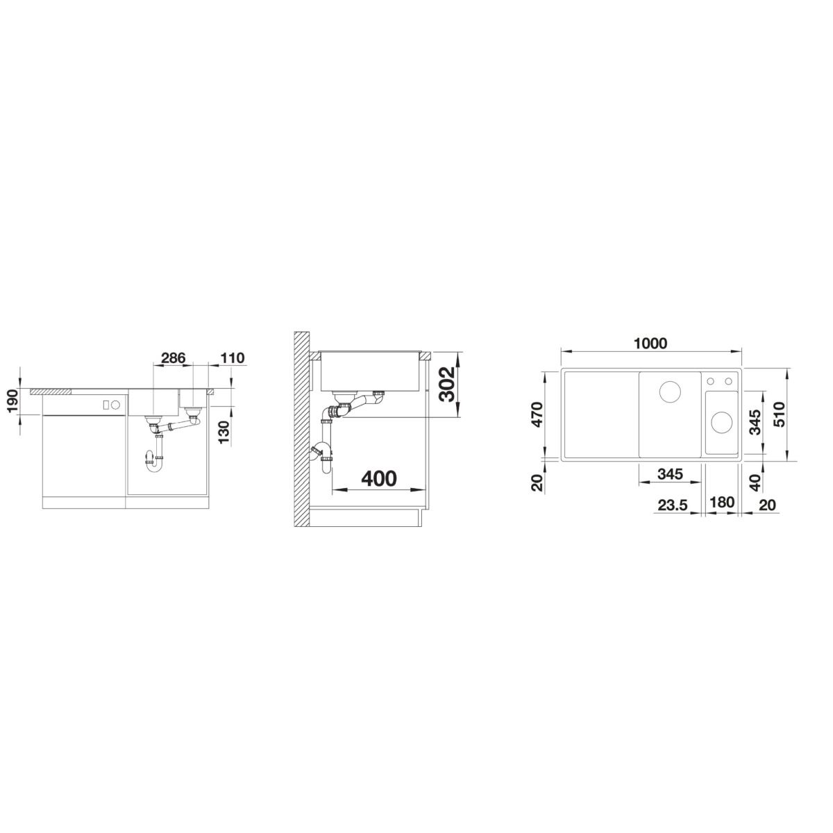 - Material: Silgranit PuraDur (glatte, einheitliche Oberfläche, die sich wie Stein anfühlt)