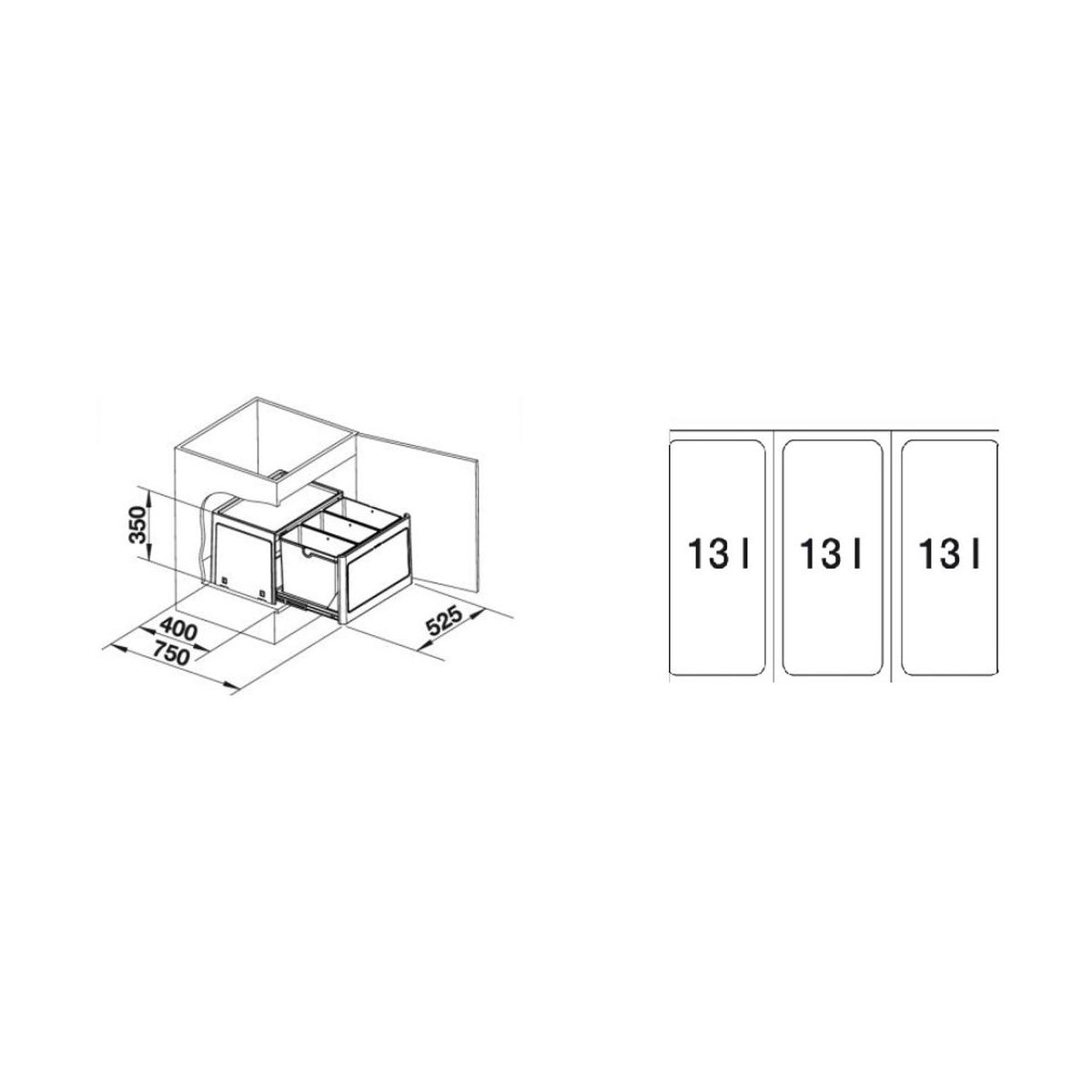 - Fassungsvermögen der Körbe jeweils 13 Liter