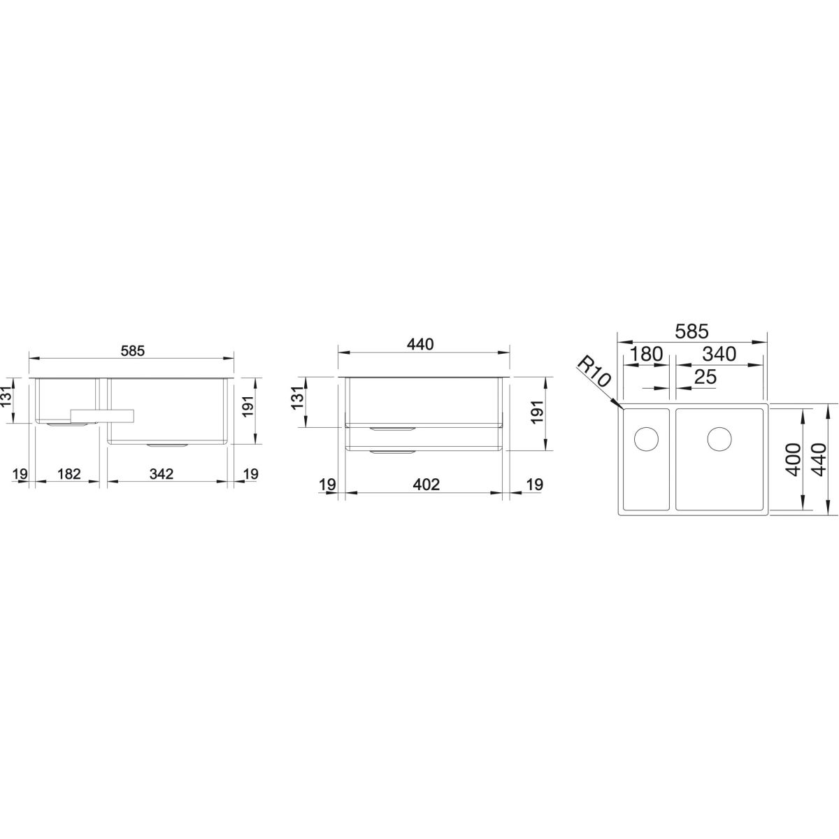 - Tiefe des großen Fachs: 19 cm