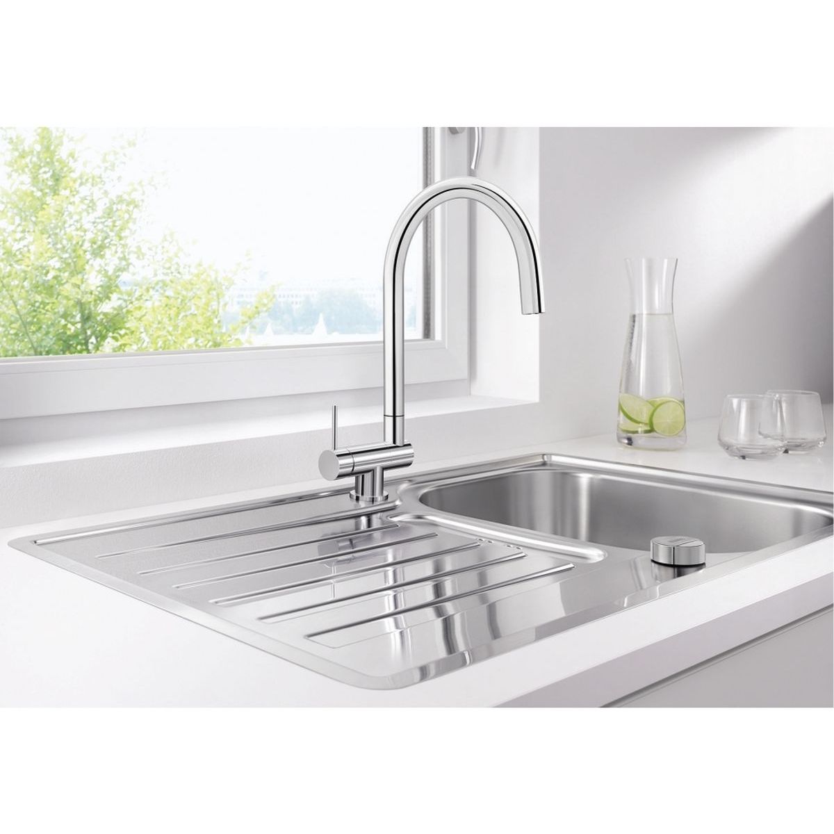 - Der Mindestabstand zwischen Spüle und Fensterflügel beträgt 6,5 cm