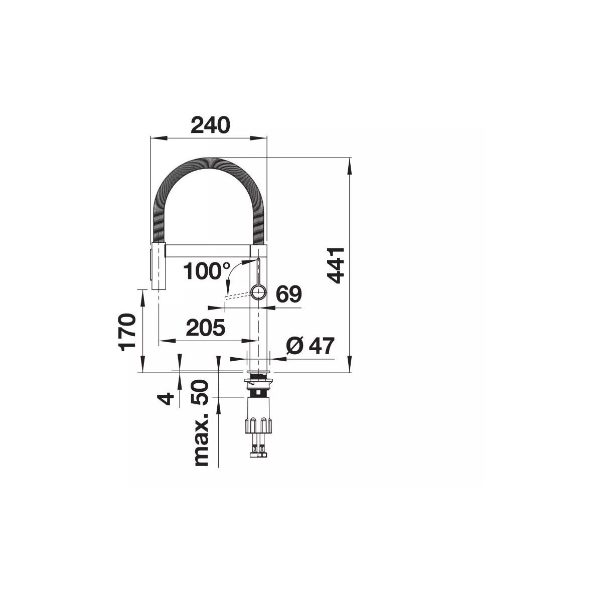 - Höhe der Armatur: 44,1 cm