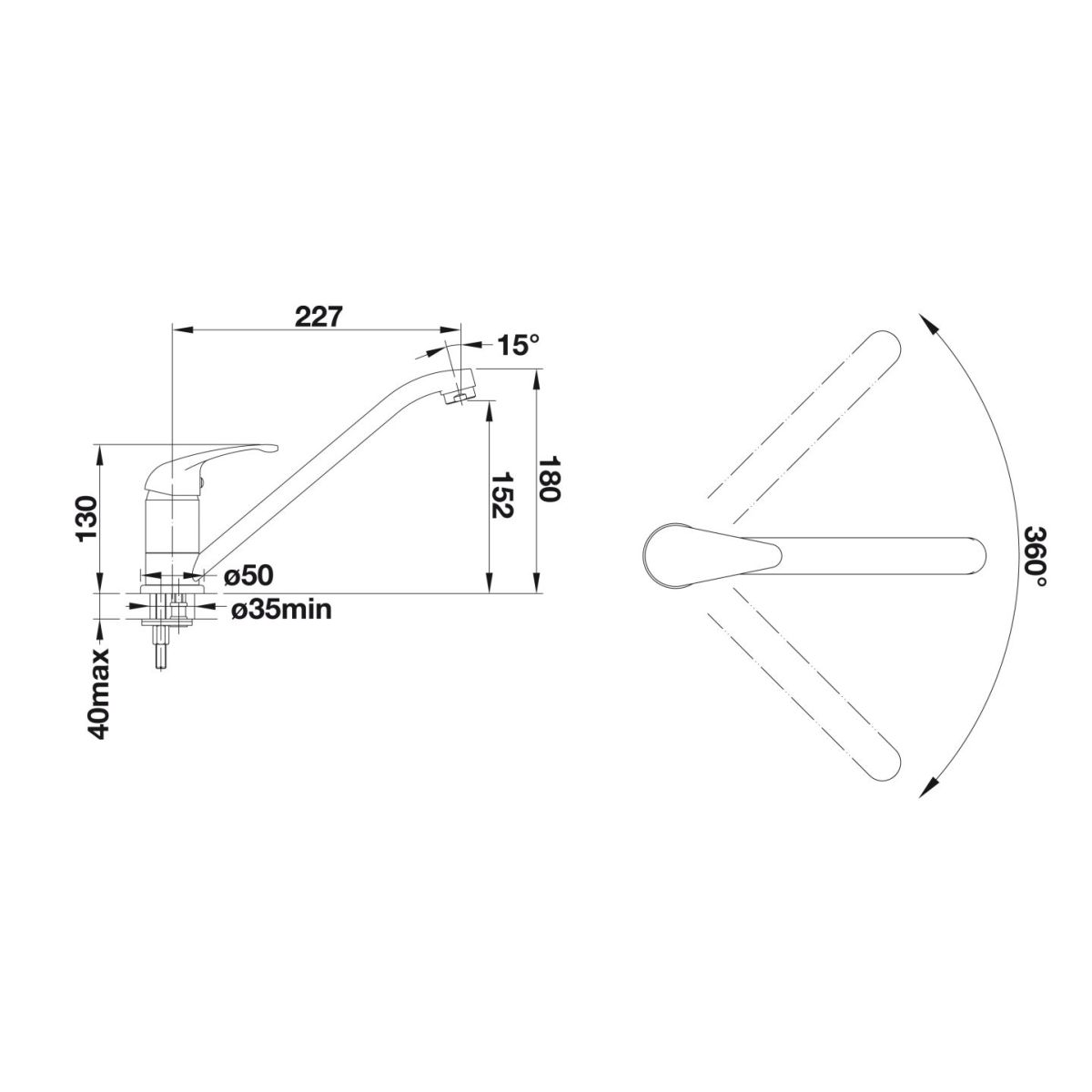 - beweglicher Auslauf, Drehwinkel: 360°