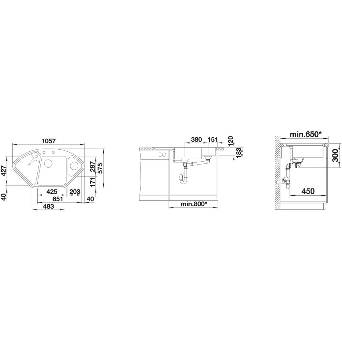 - Abmessungen der Spüle: 105,7 x 57,5 cm