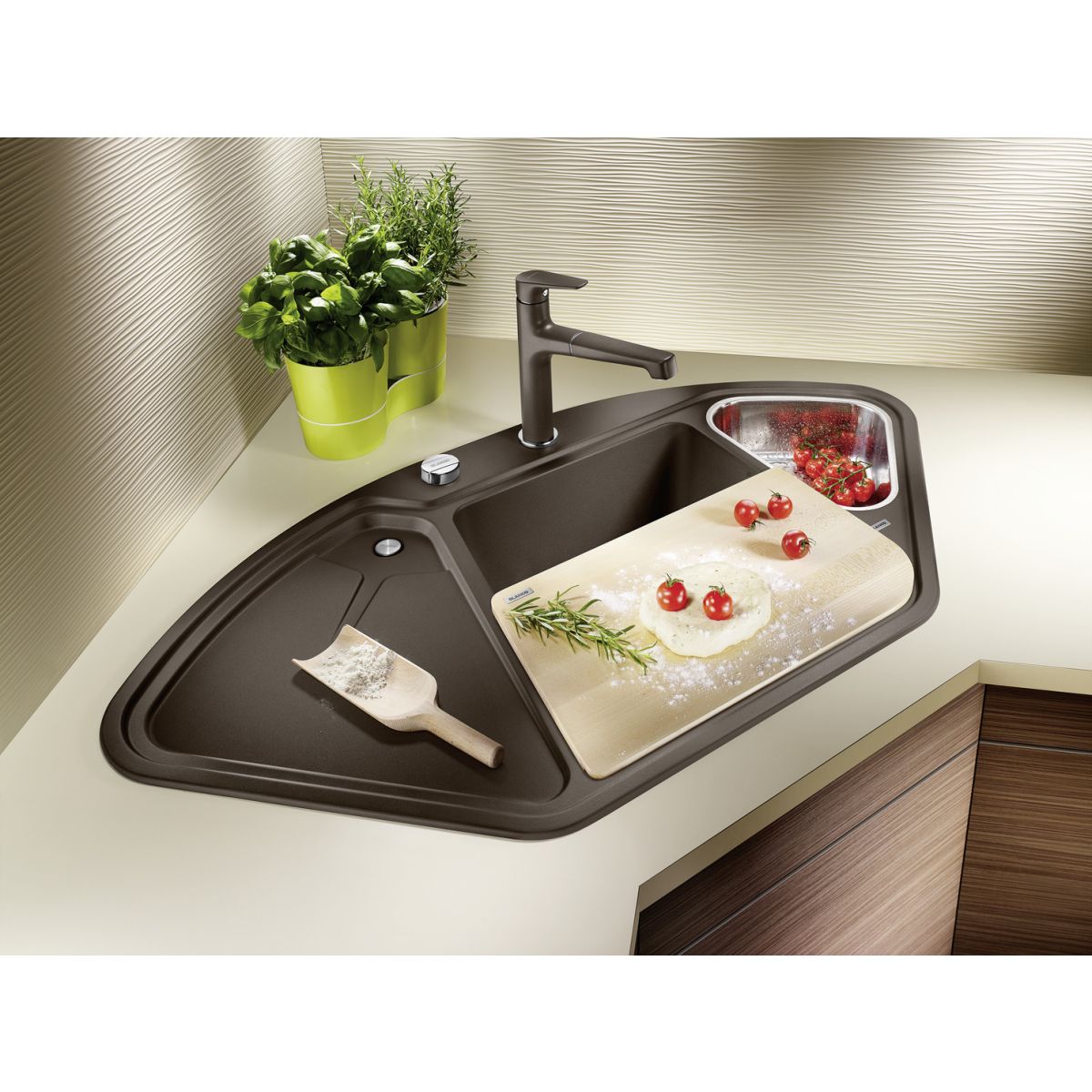 - Material: Silgranit (glatte, einheitliche Oberfläche, die sich wie Stein anfühlt)