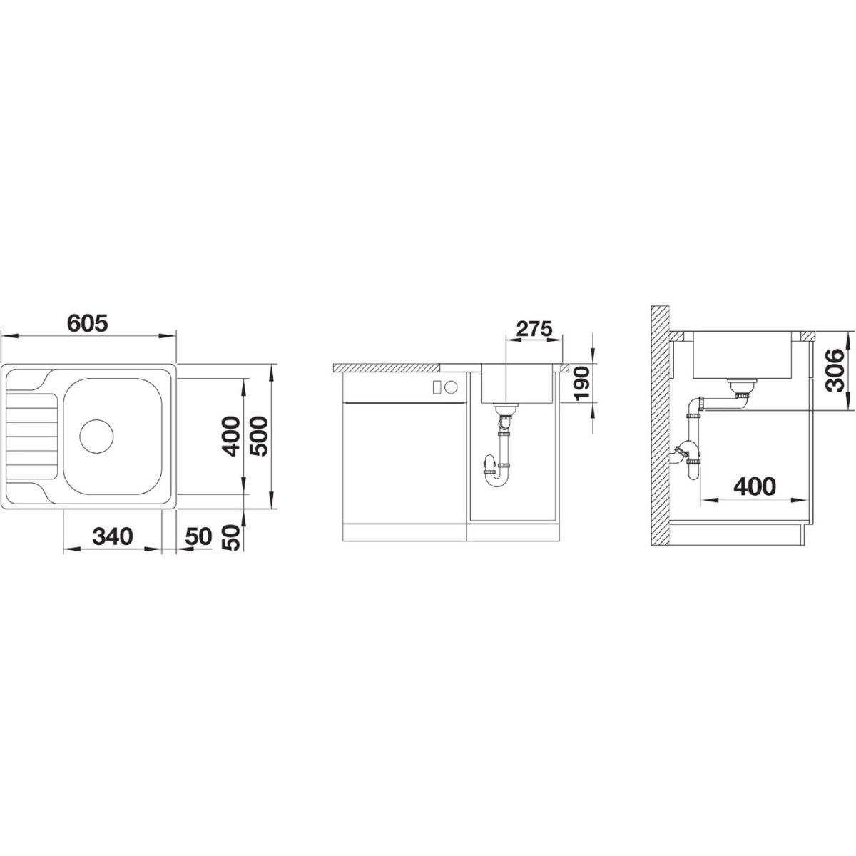 - Abmessungen der Spüle: 60,5 x 50 cm