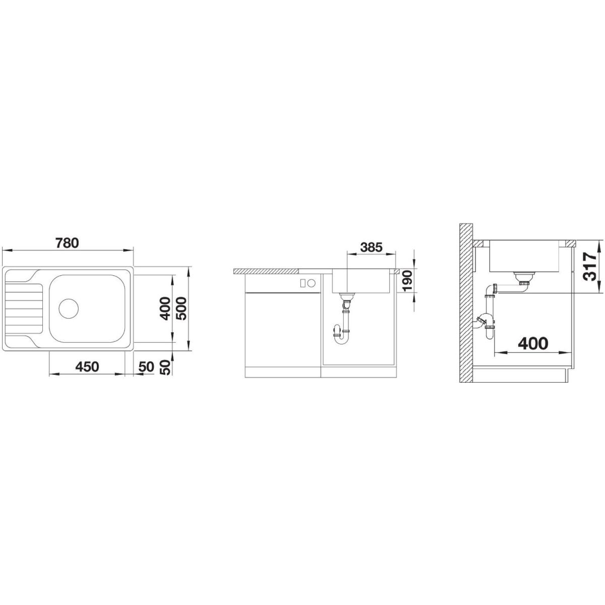 - Abmessungen der Spüle: 78 x 50 cm