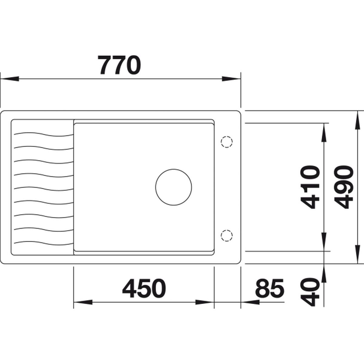 - Abmessungen der Spüle: 77 x 49 cm
