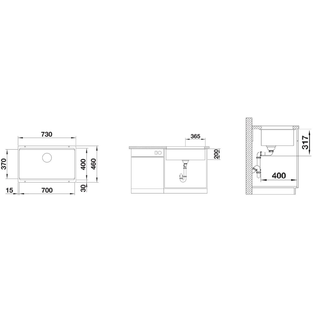 - Abmessungen des Spülbeckens: 73 x 46 cm