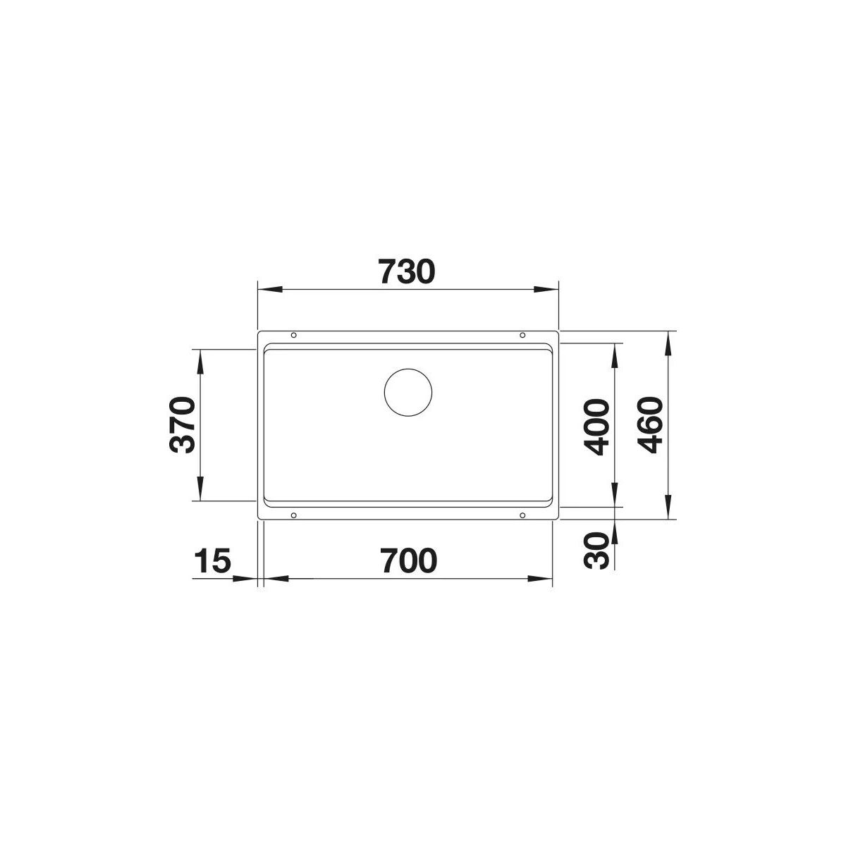 - Abmessungen der Spüle: 73 x 46 cm