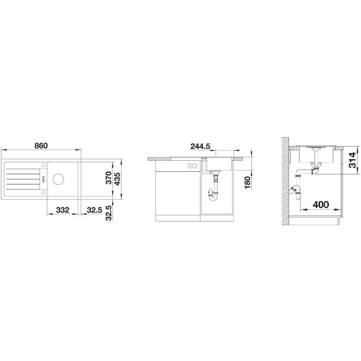 - Abmessungen der Spüle: 86 x 43,5 cm