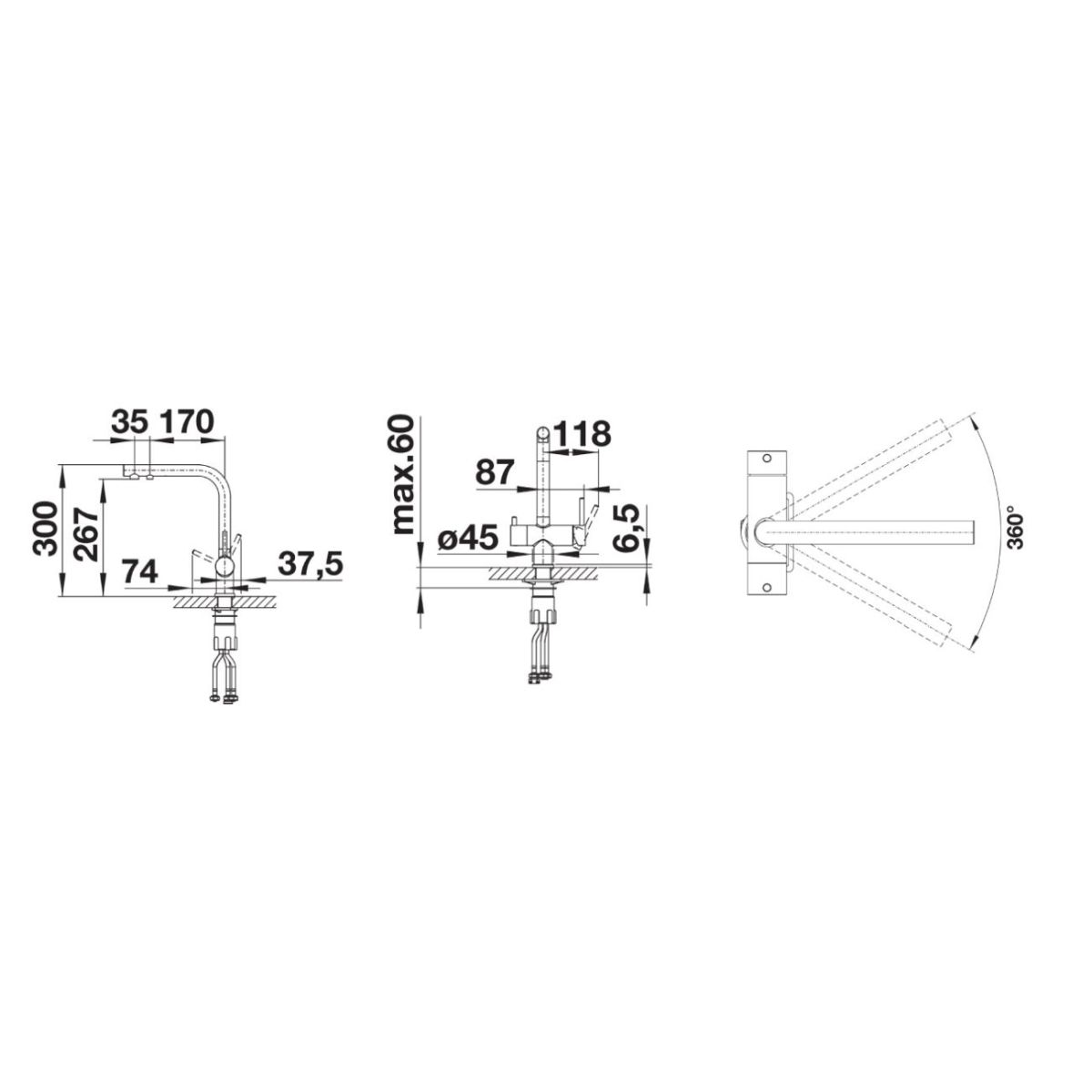 - 3 flexible Anschlussschläuche mit einer Länge von 45 cm und eine 3/8”-Mutter garantieren eine schnelle und sichere Montage