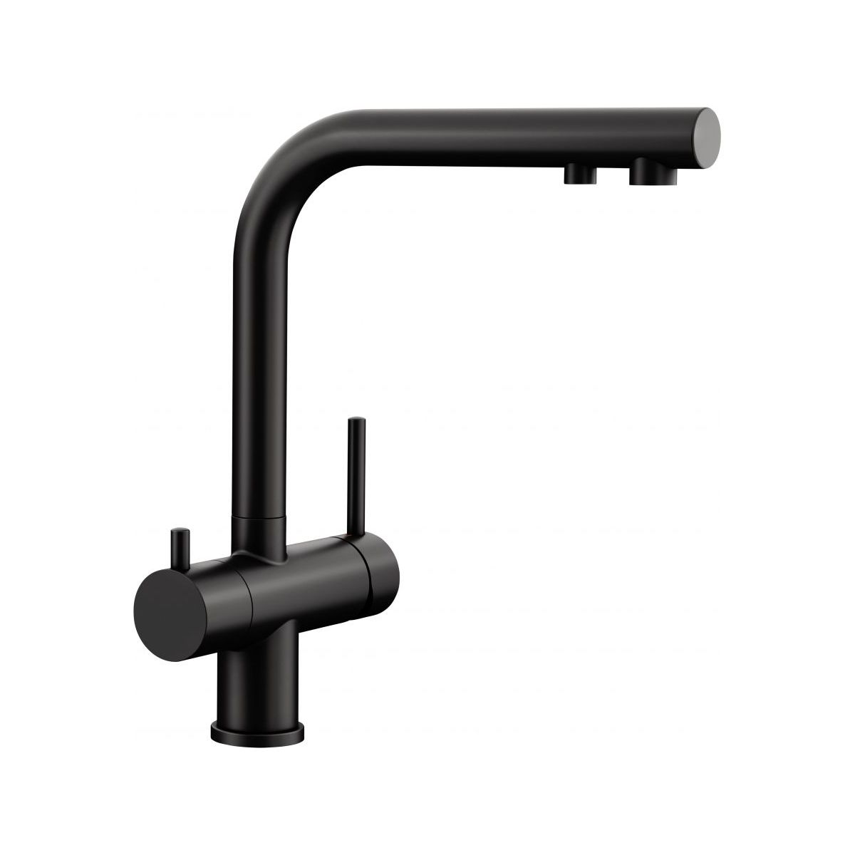- mit einem Hebel zum Einschalten des Leitungswassers auf der rechten Seite und einem Hebel für aufbereitetes Wasser auf der linken Seite