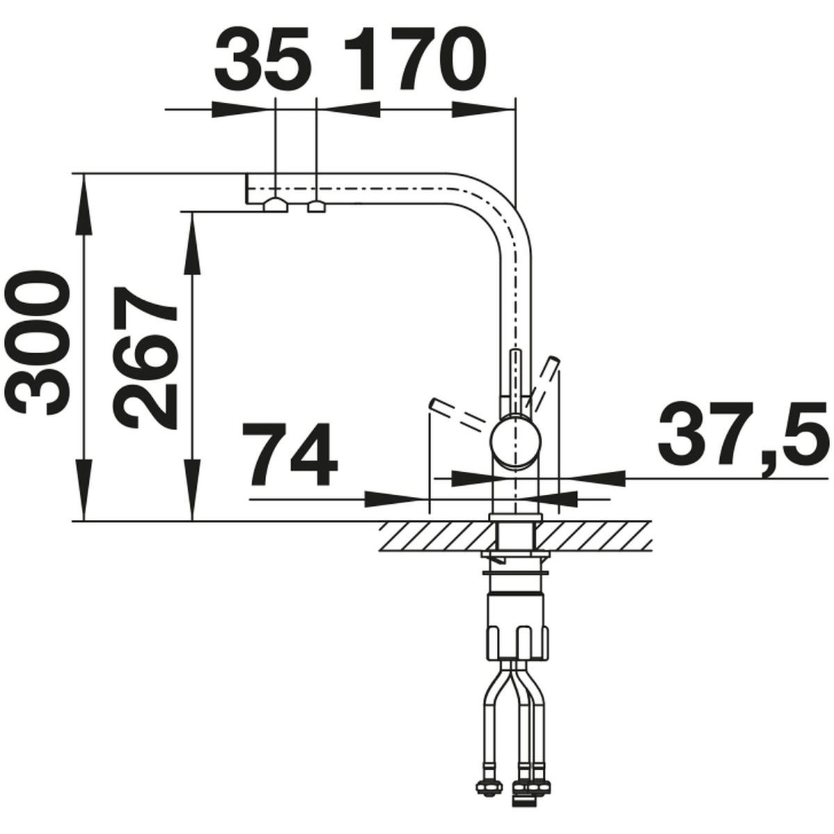 - Erforderliche Öffnung für die Armatur mit einem Durchmesser von 35 mm