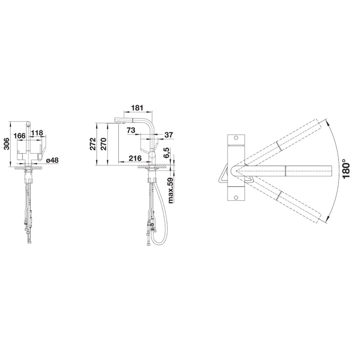 - Schwenkwinkel des Auslaufs 180º