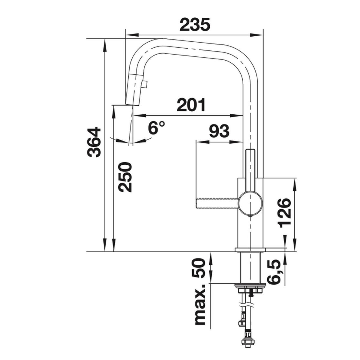 - Schwenkbarer Auslauf, Schwenkwinkel: 190°