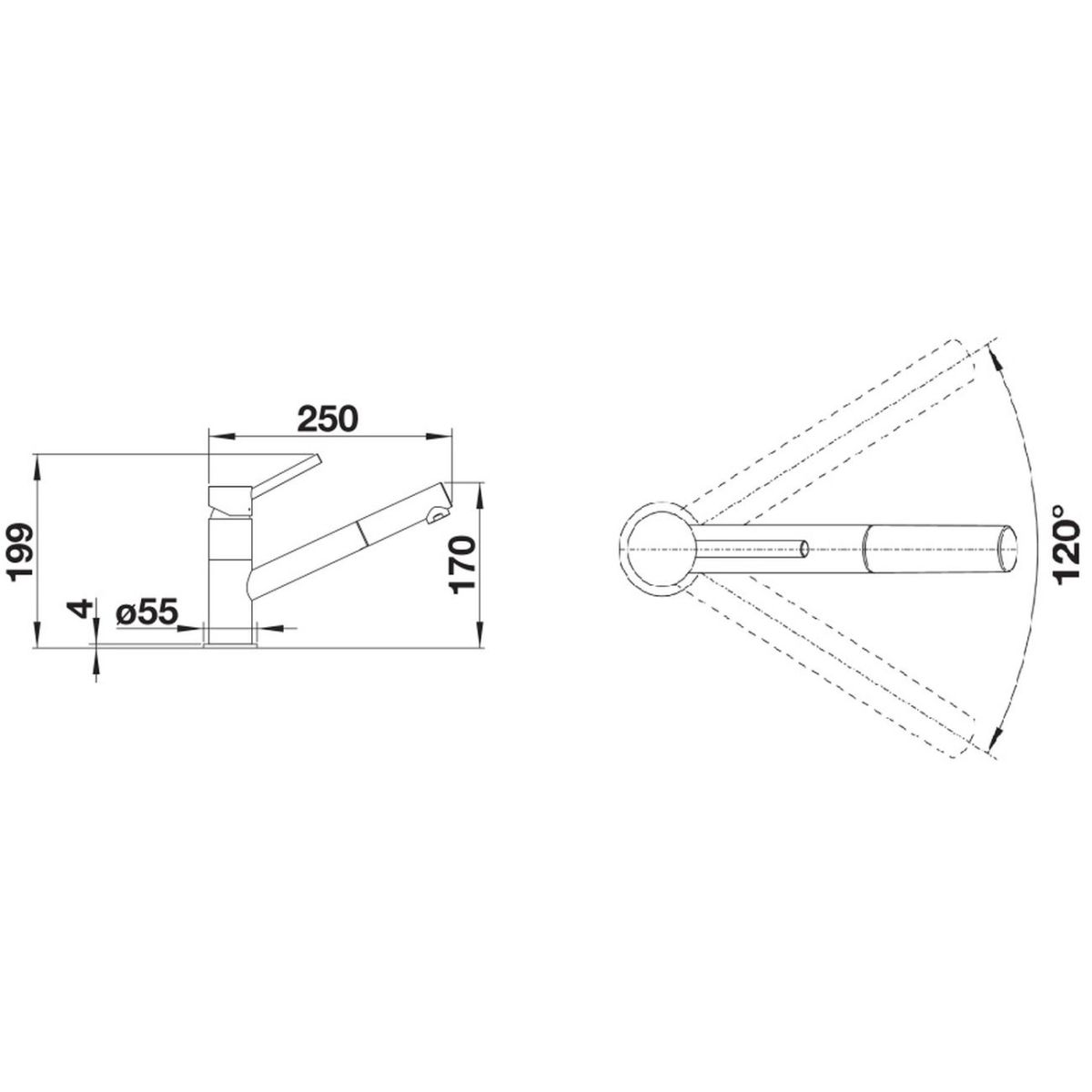 - Schwenkwinkel des Auslaufs 120°