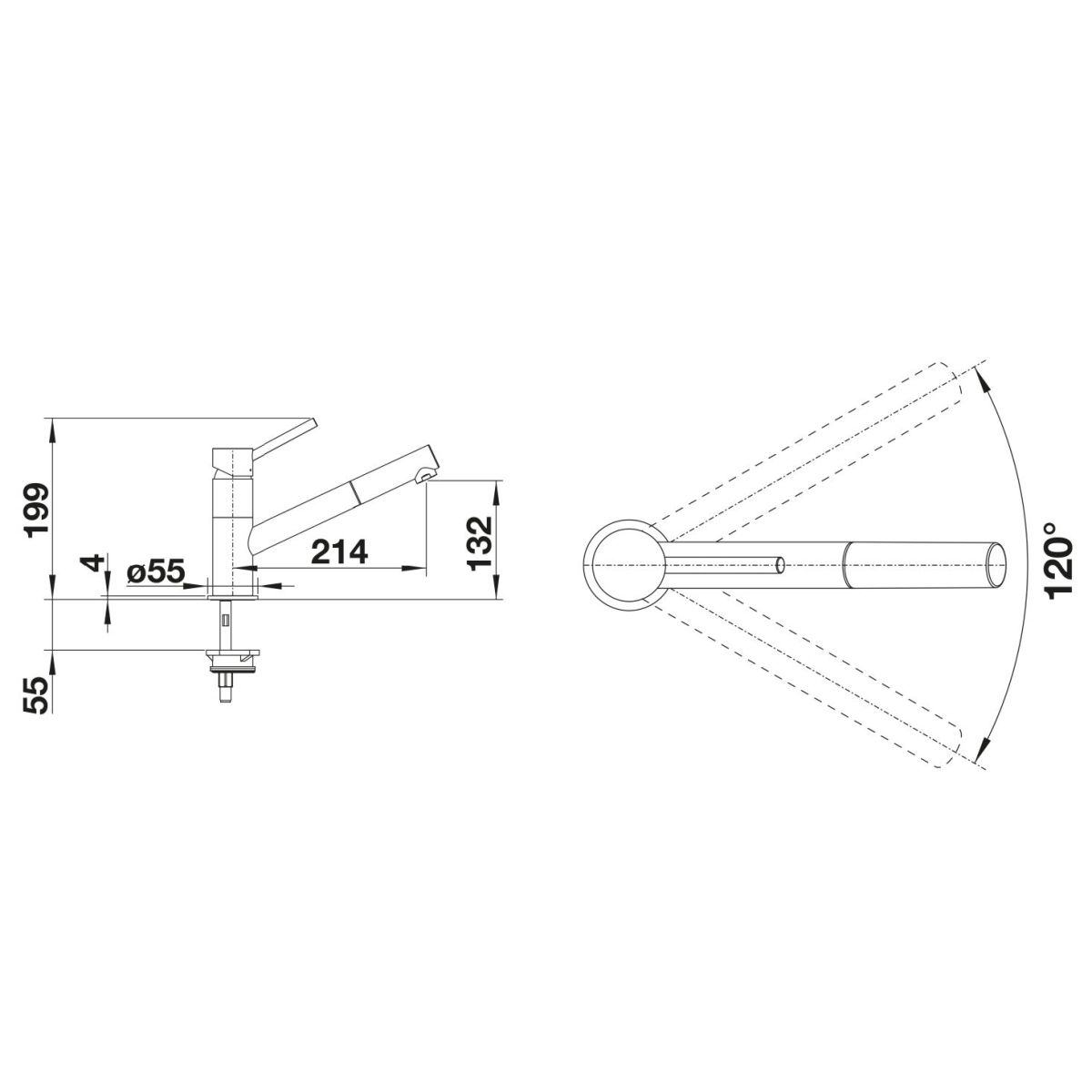 - Schwenkwinkel des Auslaufs 120°