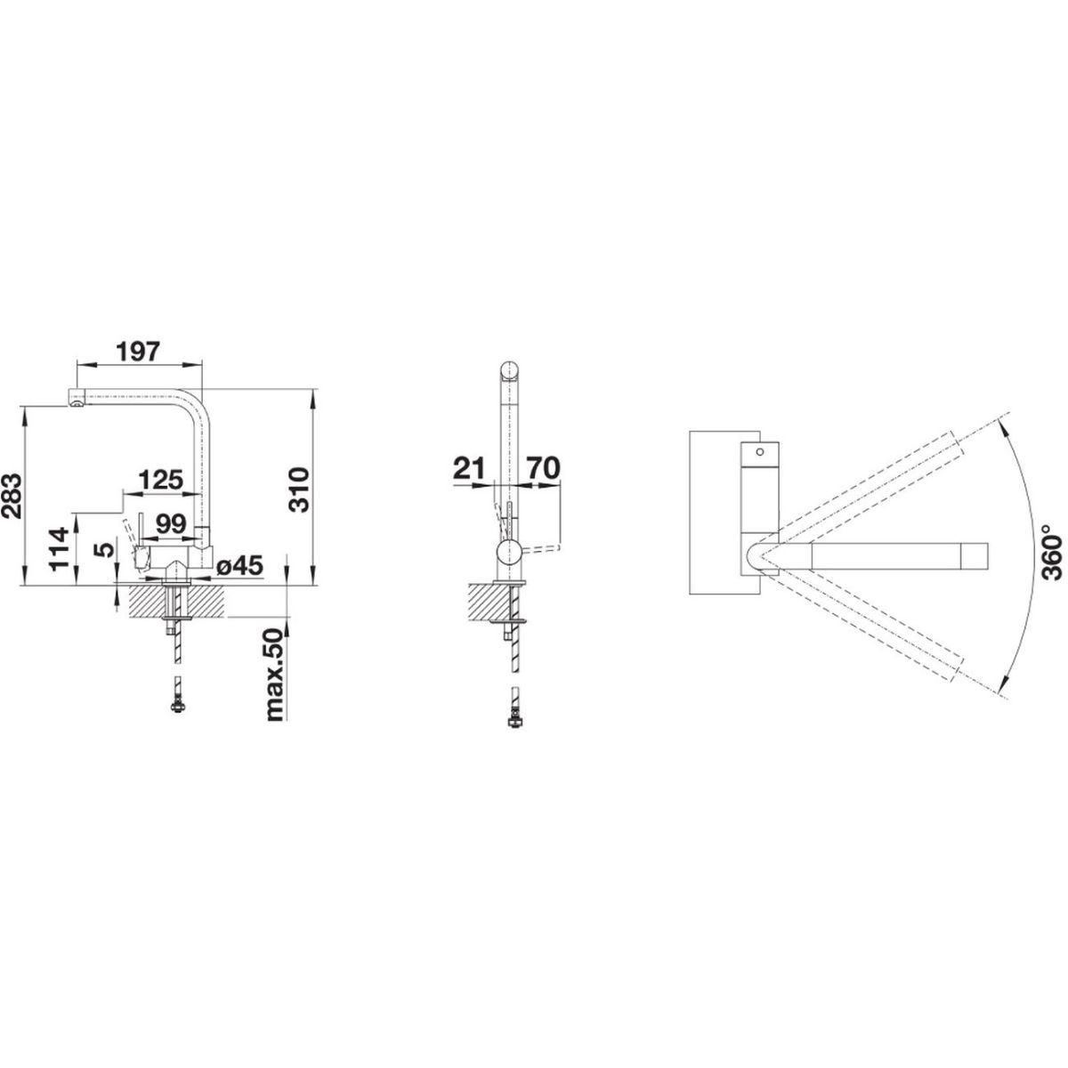- Schwenkwinkel des Auslaufs 360º