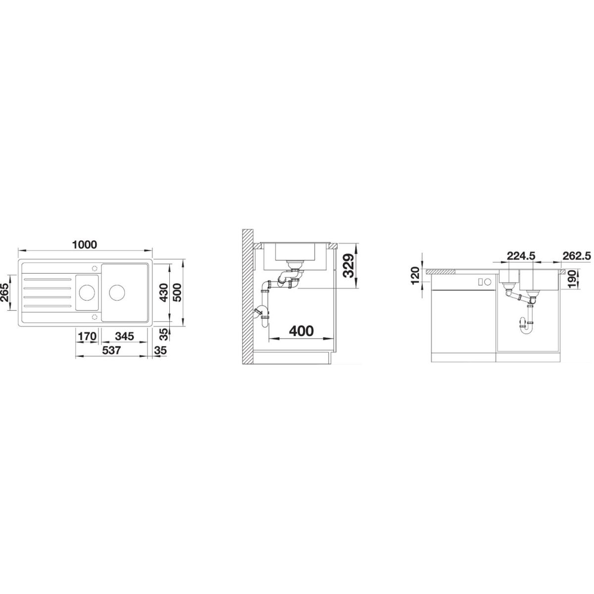 - Material: Silgranit (glatte, einheitliche Oberfläche, die sich wie Stein anfühlt)