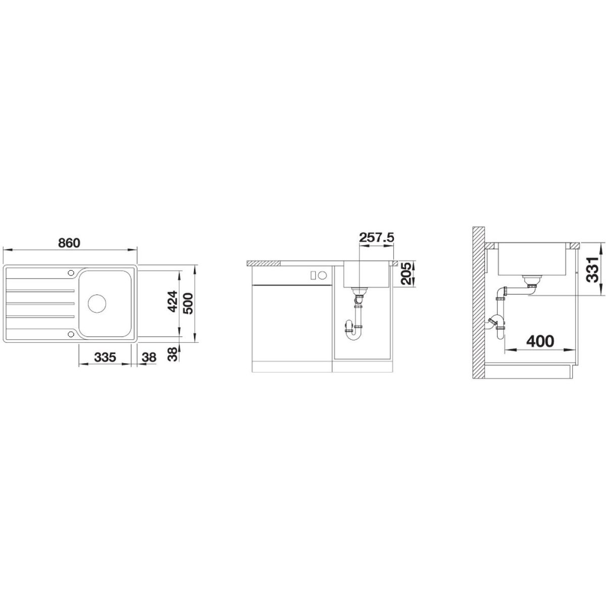 - Abmessungen der Spüle: 86 x 50 cm
