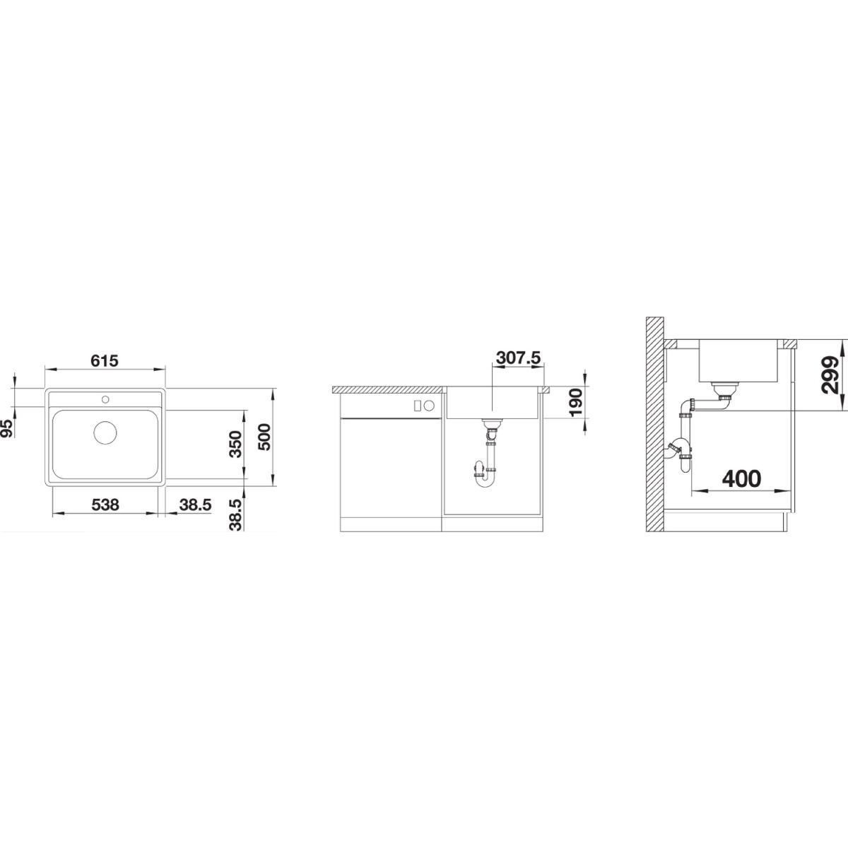 - Abmessungen der Spüle: 61,5 x 50 cm