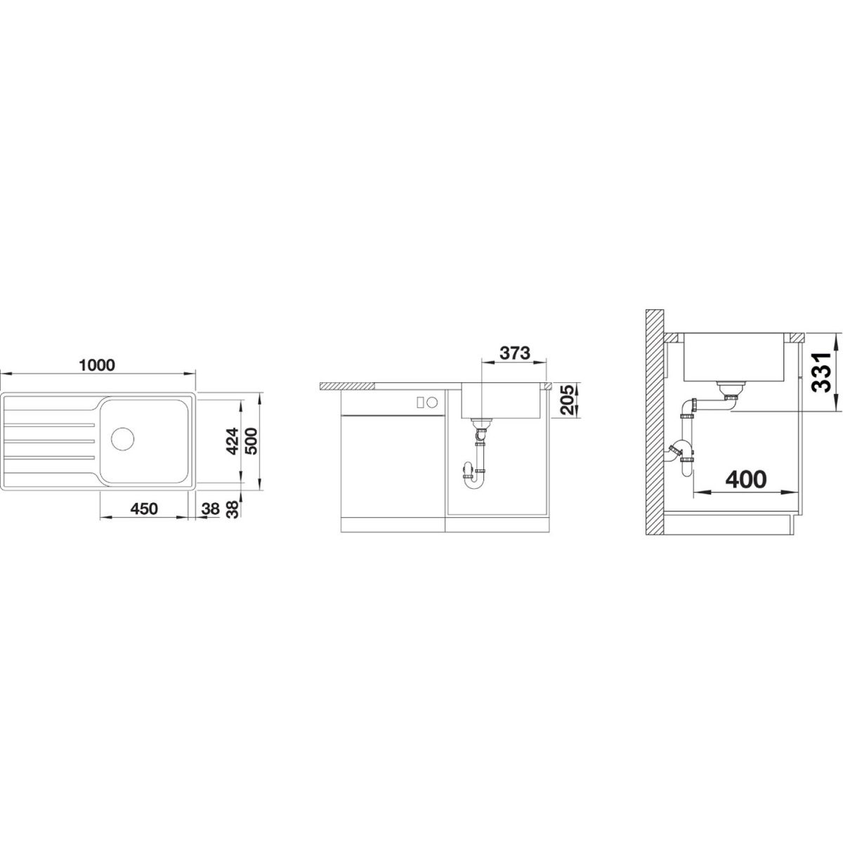 - Abmessungen der Spüle: 100 x 50 cm