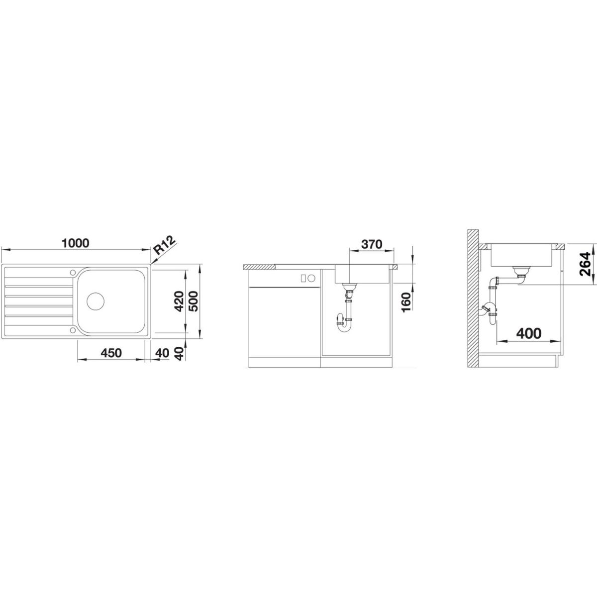 - Abmessungen der Spüle: 100 x 50 cm