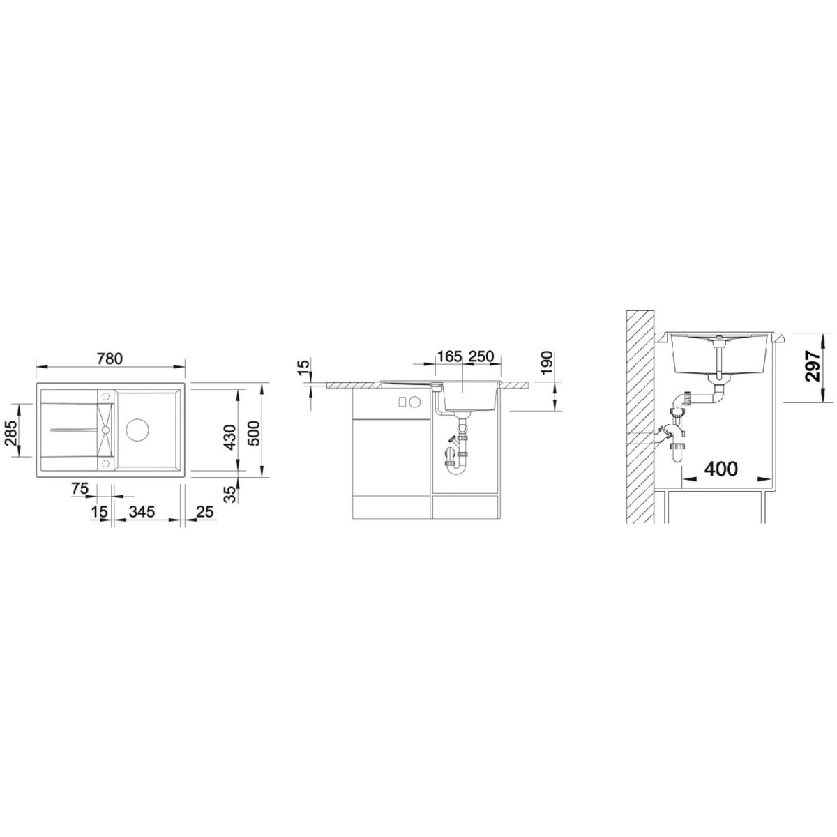 - Abmessungen der Spüle: 78 x 50 cm