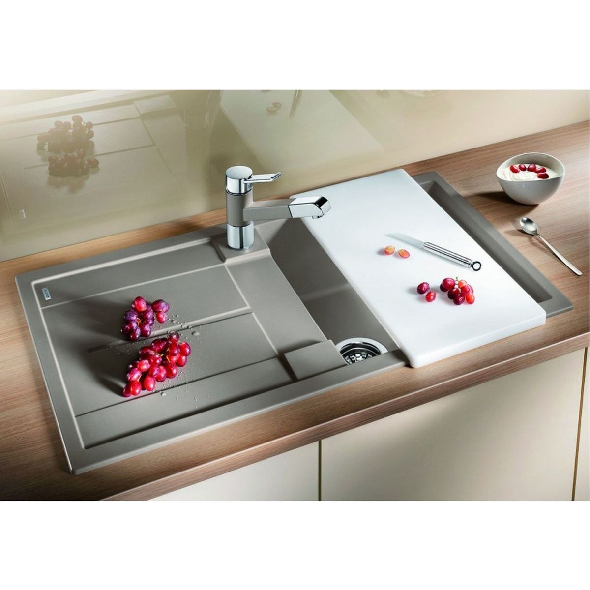 - Material: Silgranit PuraDur (glatte, einheitliche Oberfläche, die sich wie Stein anfühlt)