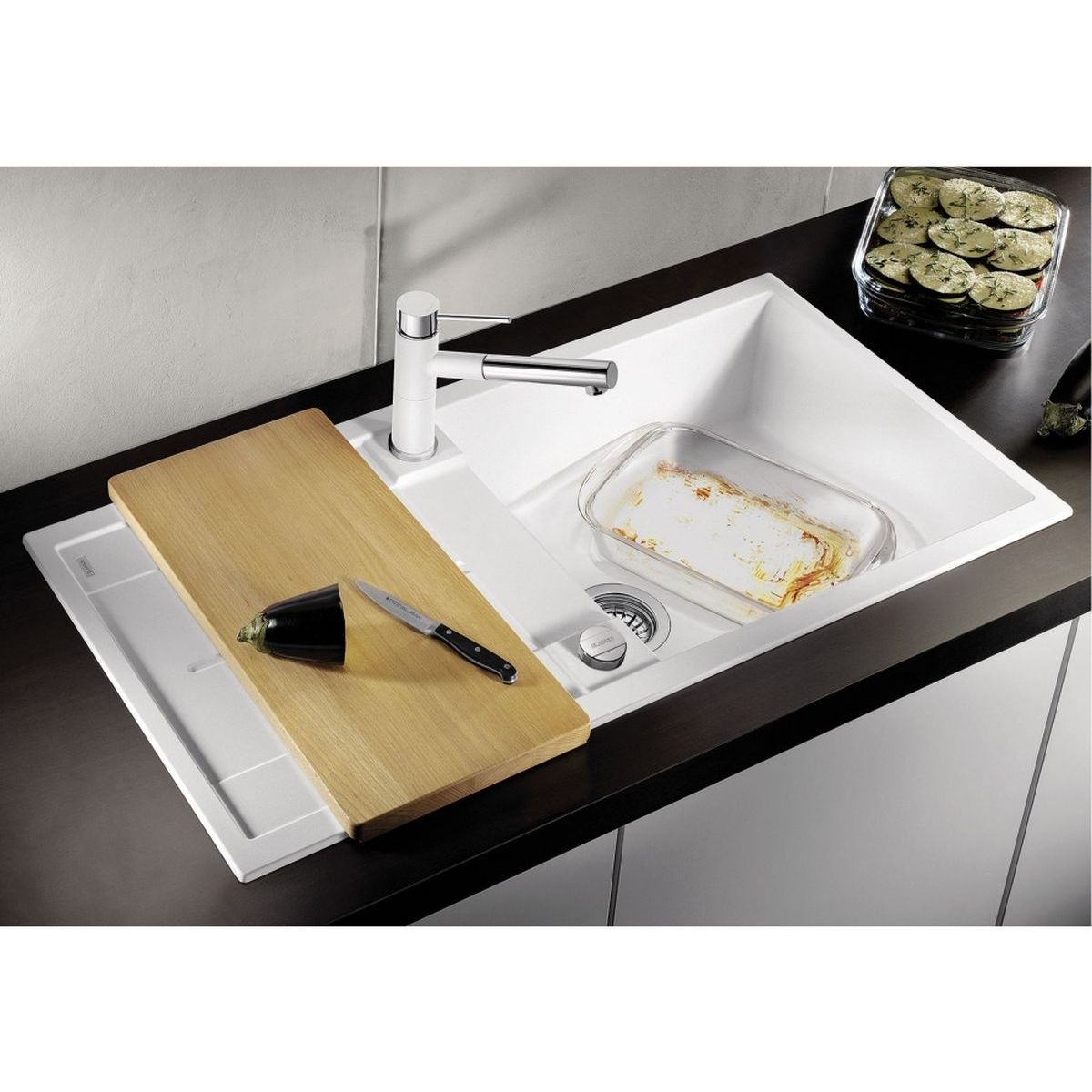 - Material: Silgranit PuraDur (glatte, einheitliche Oberfläche, die sich wie Stein anfühlt)