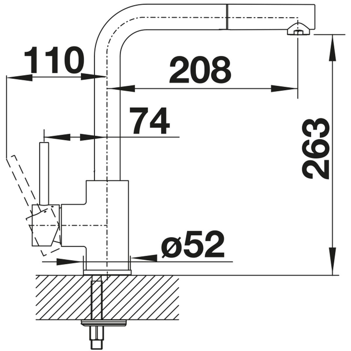- erforderliche Bohrung für die Armatur: 35 mm