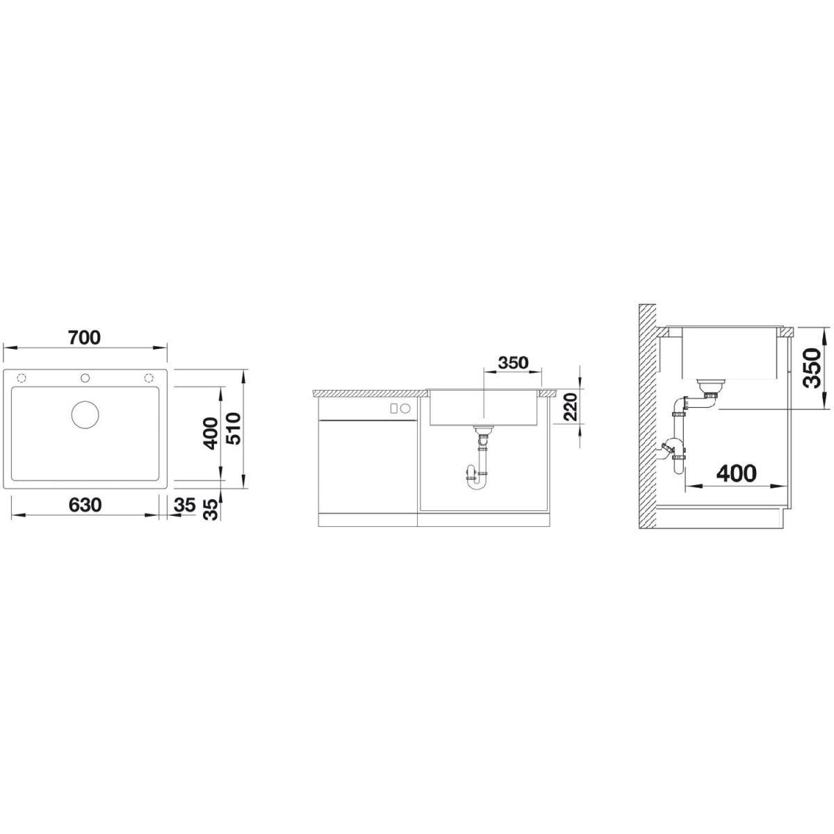 - Abmessungen der Spüle: 70 x 51 cm