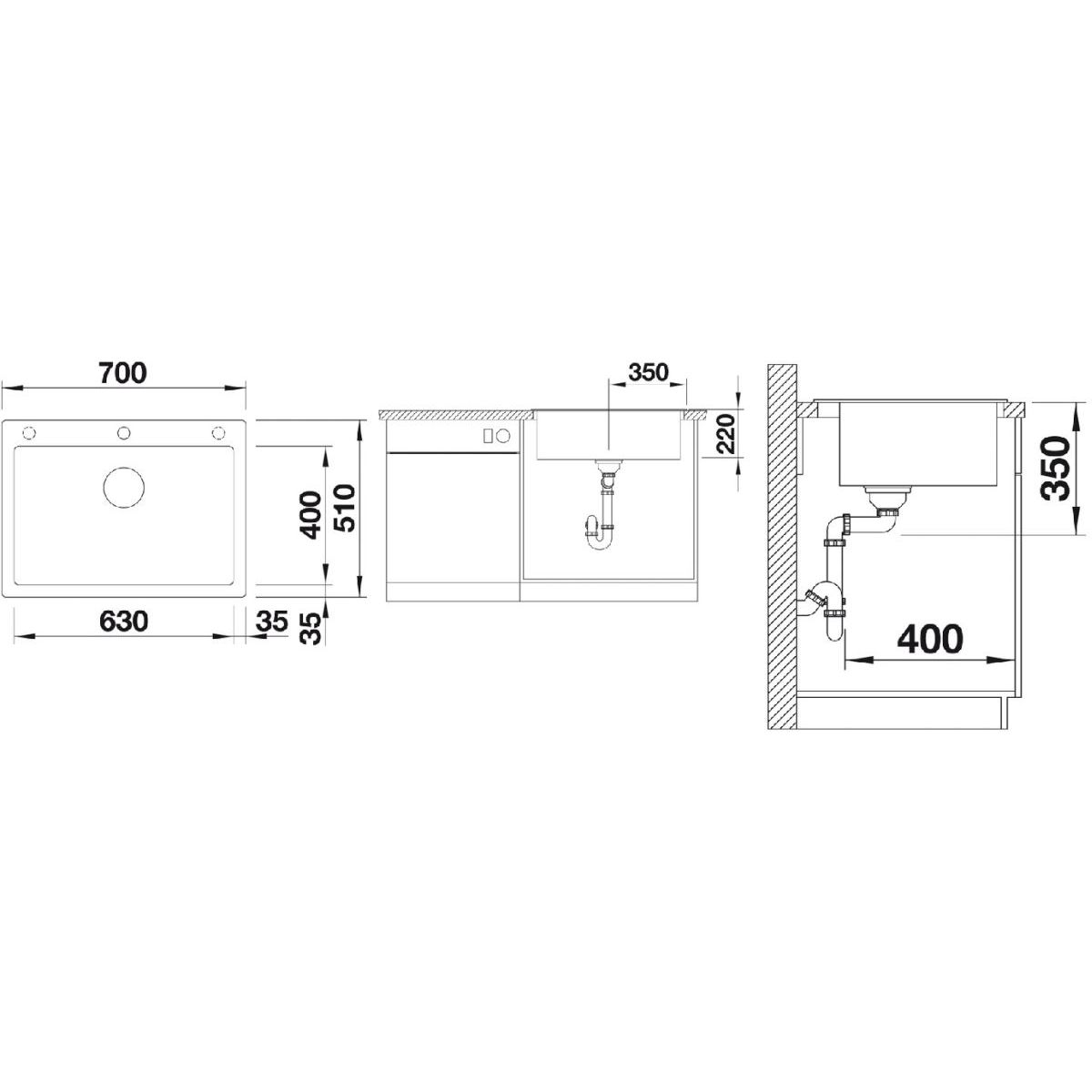 - Abmessungen der Spüle: 70 x 51 cm