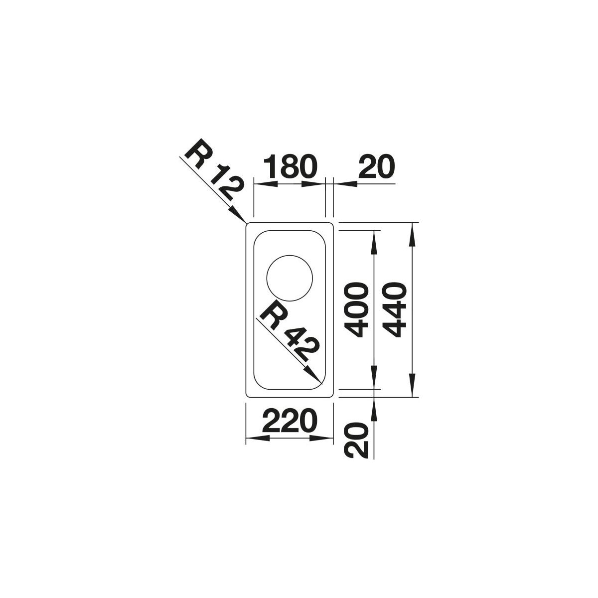 - Abmessungen der Spüle: 22 x 44 cm