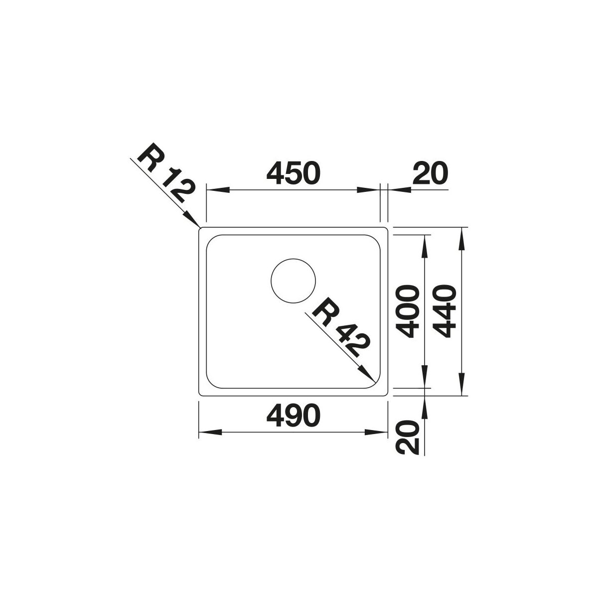 - Abmessungen des Spülbeckens: 49 x 44 cm