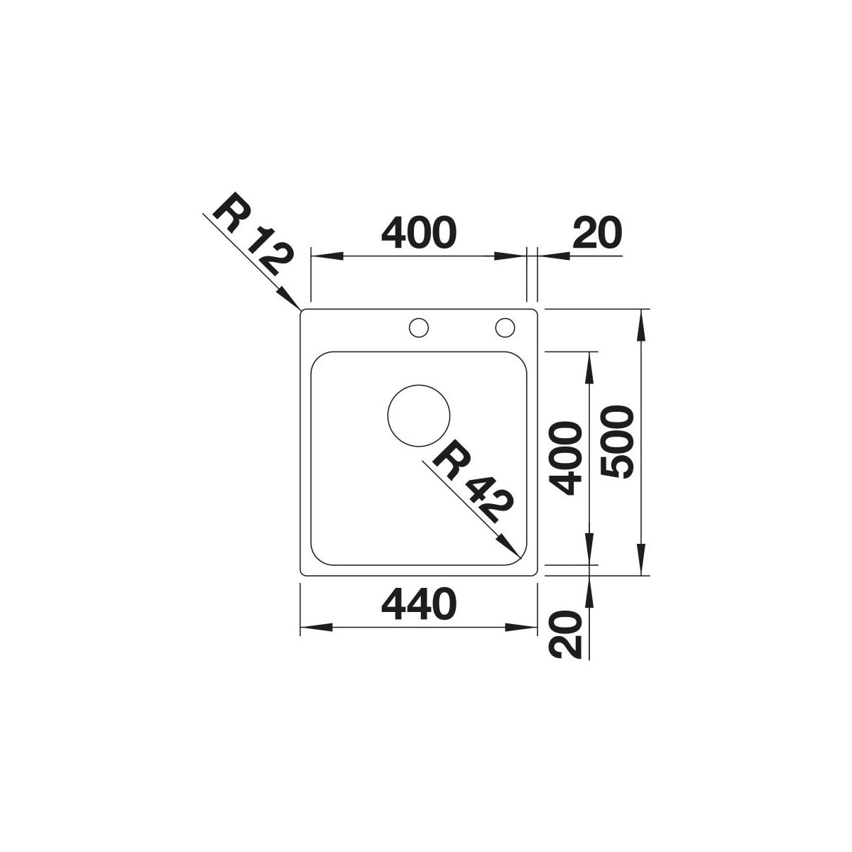 - Abmessungen des Spülbeckens: 44 x 50 cm