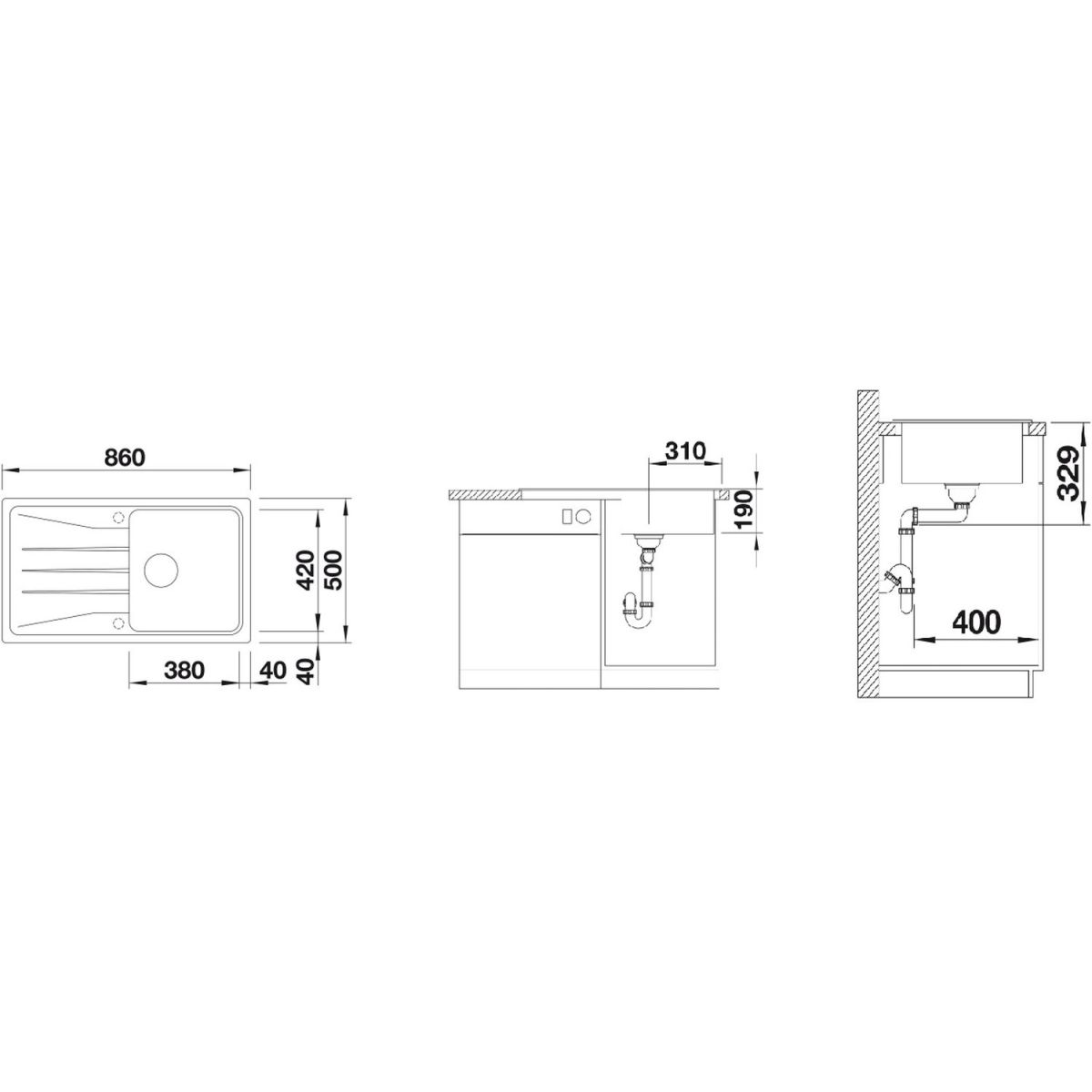 - Abmessungen der Spüle: 86 x 50 cm