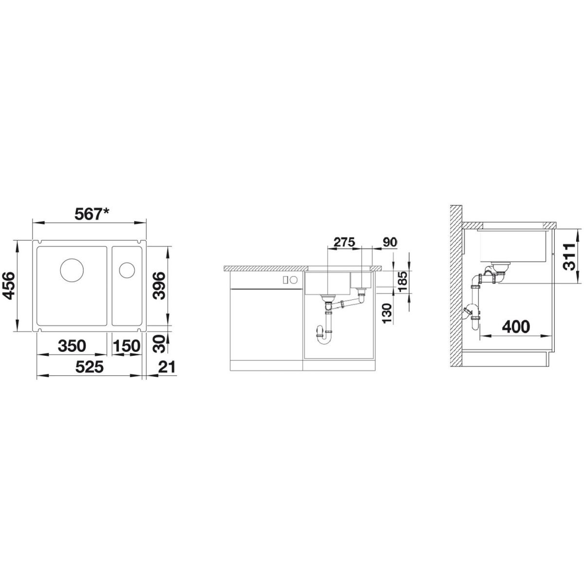 Blanco Subline 350/150-U Keramikspüle 56.7x45.6 cm 523746