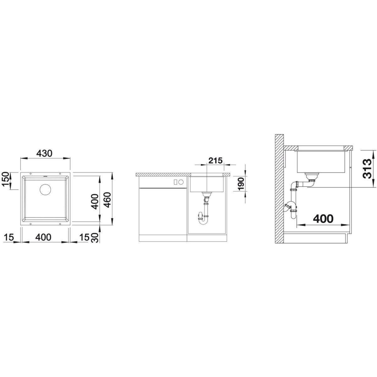 - Abmessungen des Spülbeckens: 43 x 46 cm