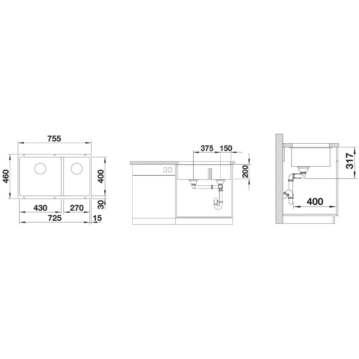 - Material: Silgranit PuraDur (glatte, einheitliche Oberfläche, die sich wie Stein anfühlt)