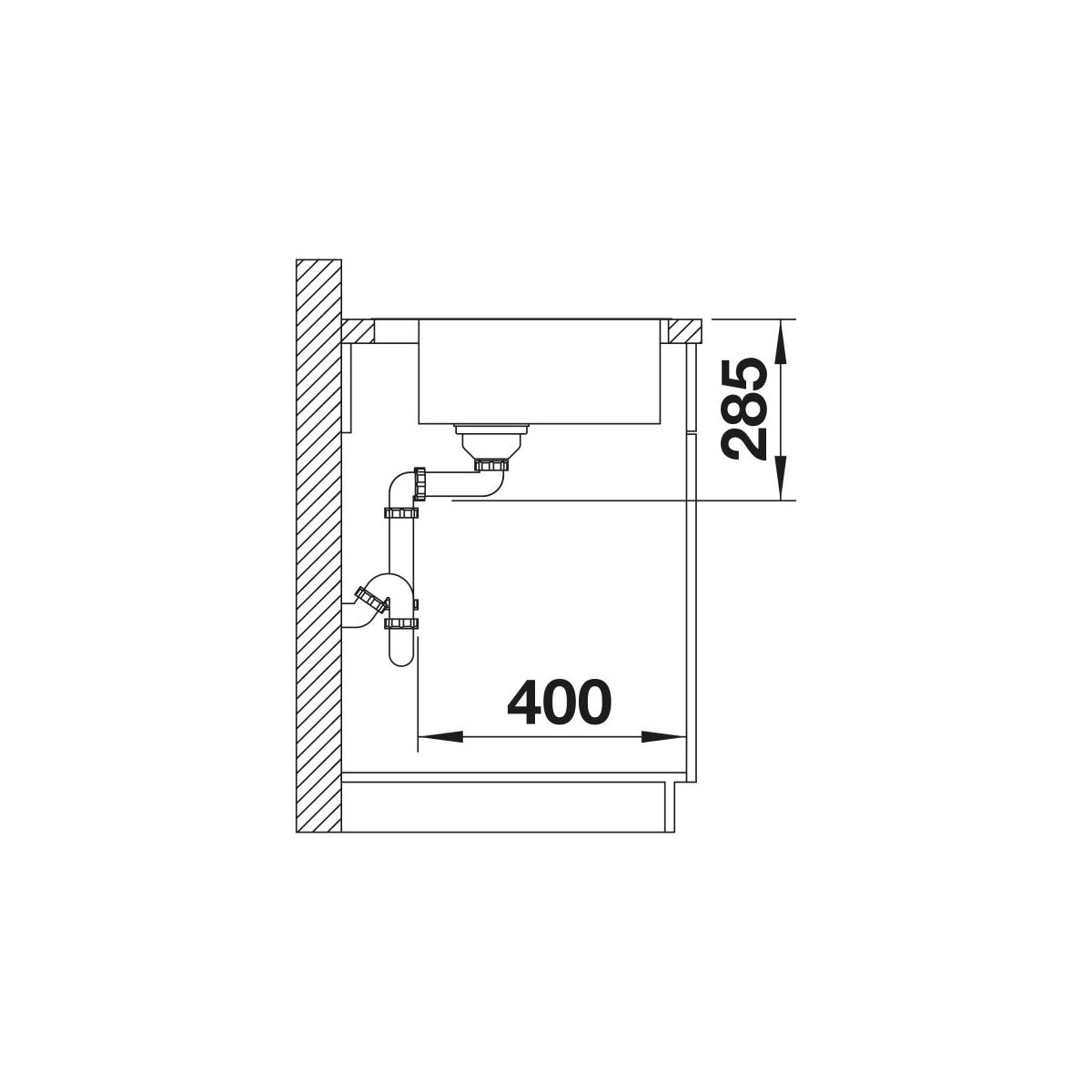 - Abmessungen des Spülbeckens: 50 x 44 cm