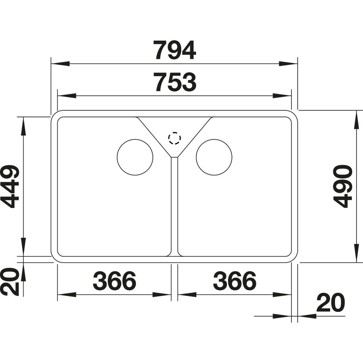 - Abmessungen der Spüle: 79,4 x 49 cm
