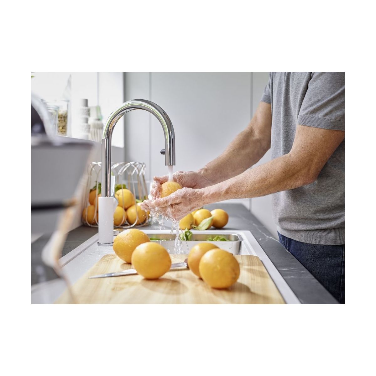 - Material: Silgranit PuraDur (glatte, homogene Oberfläche, die sich wie Stein anfühlt)