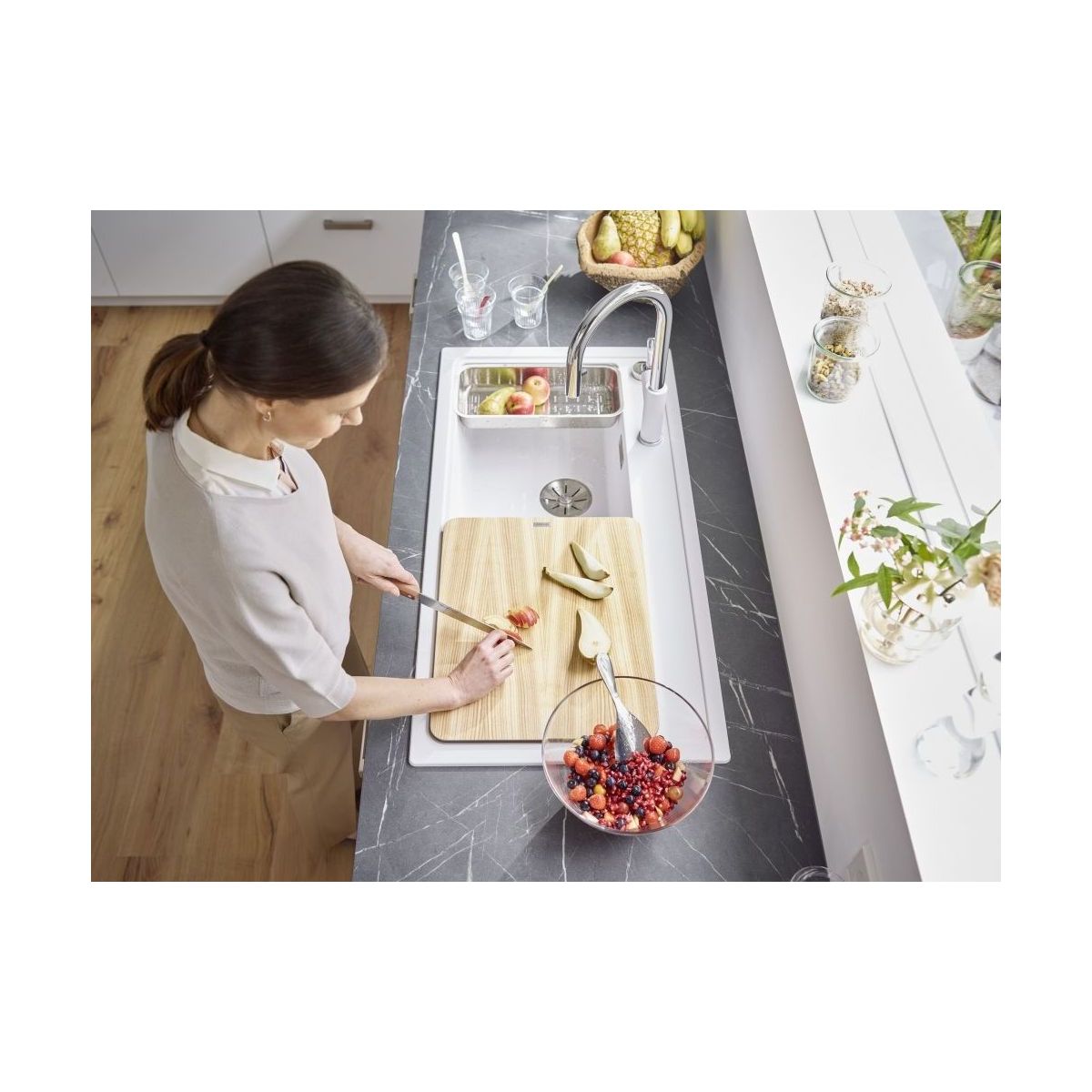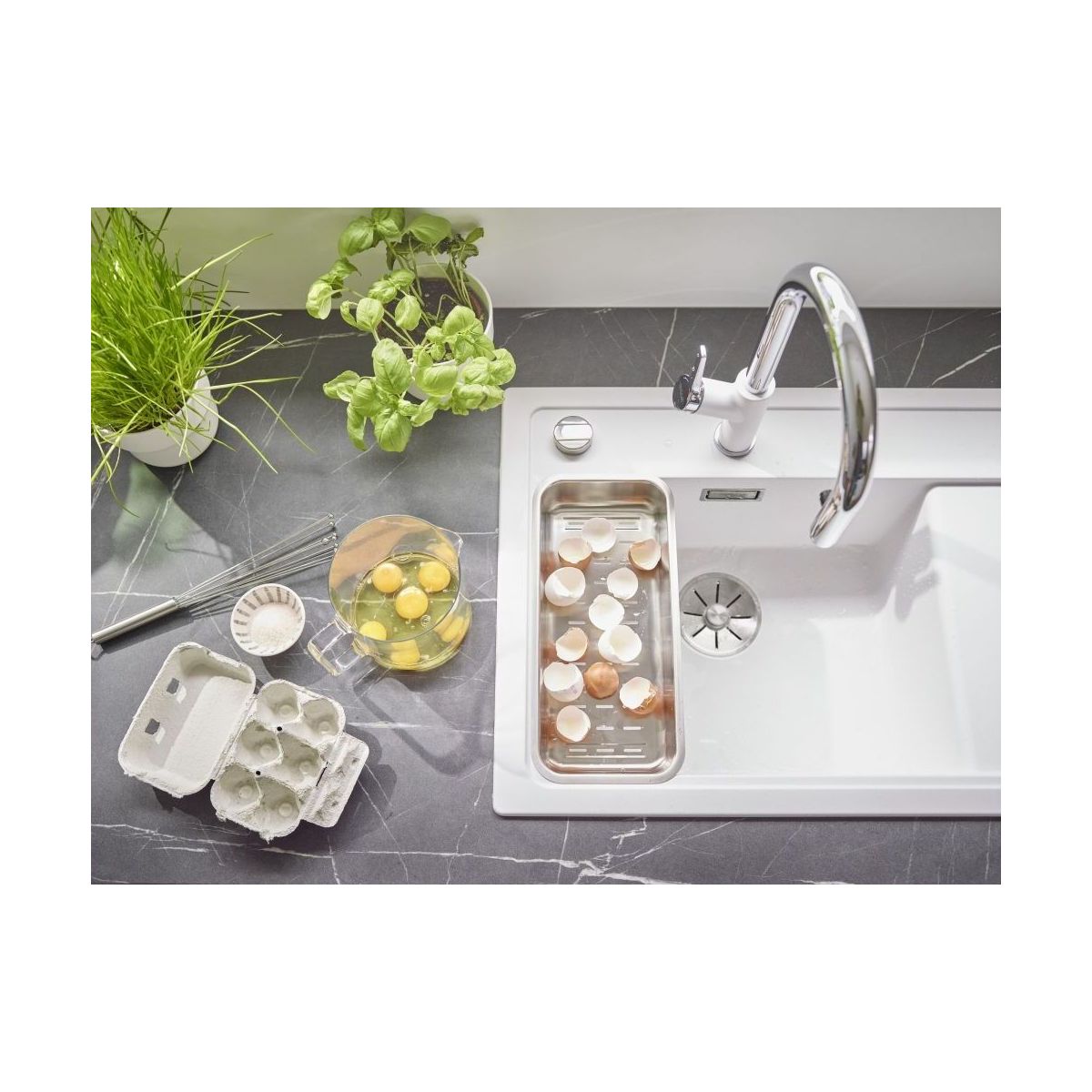 - Material: Silgranit PuraDur (glatte, homogene Oberfläche, die sich wie Stein anfühlt)