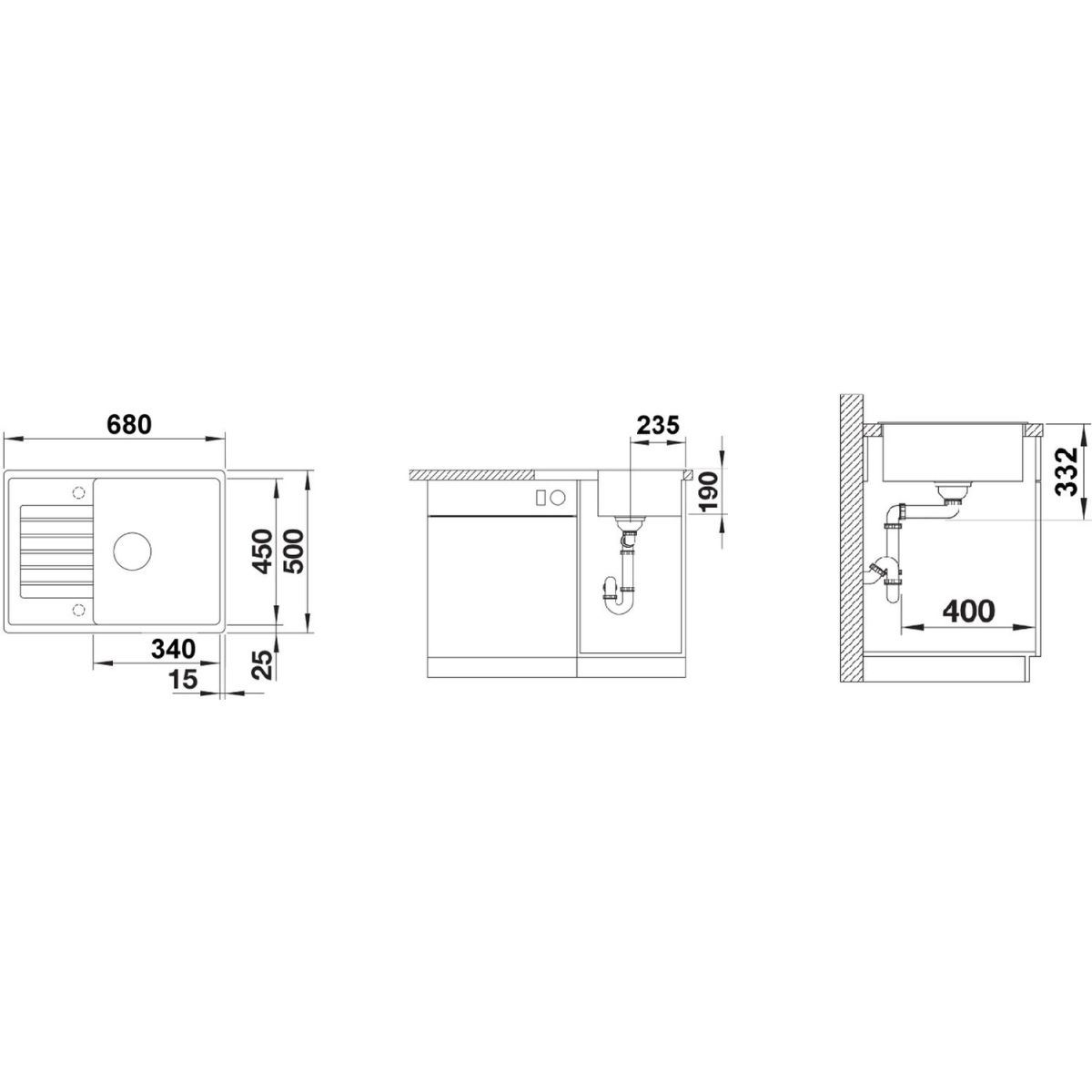 - Abmessungen der Spüle: 68 x 50 cm